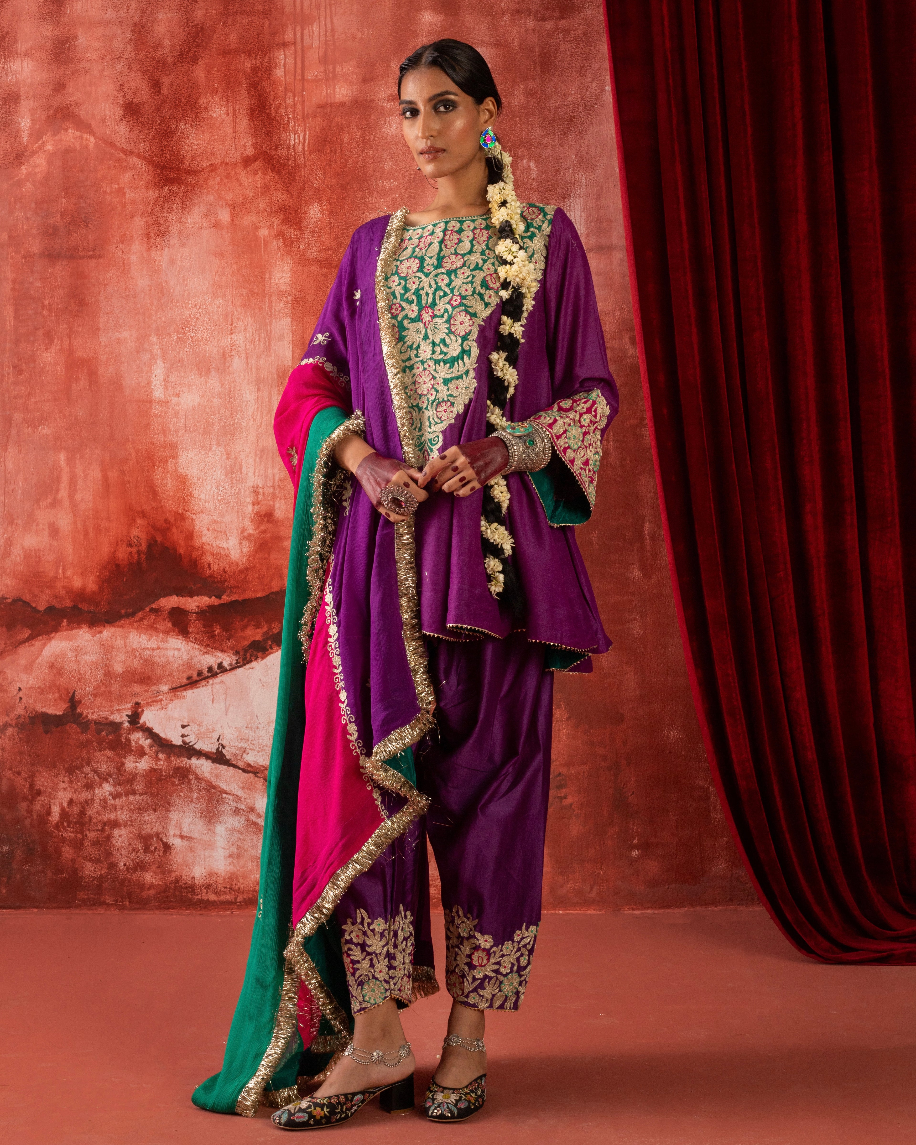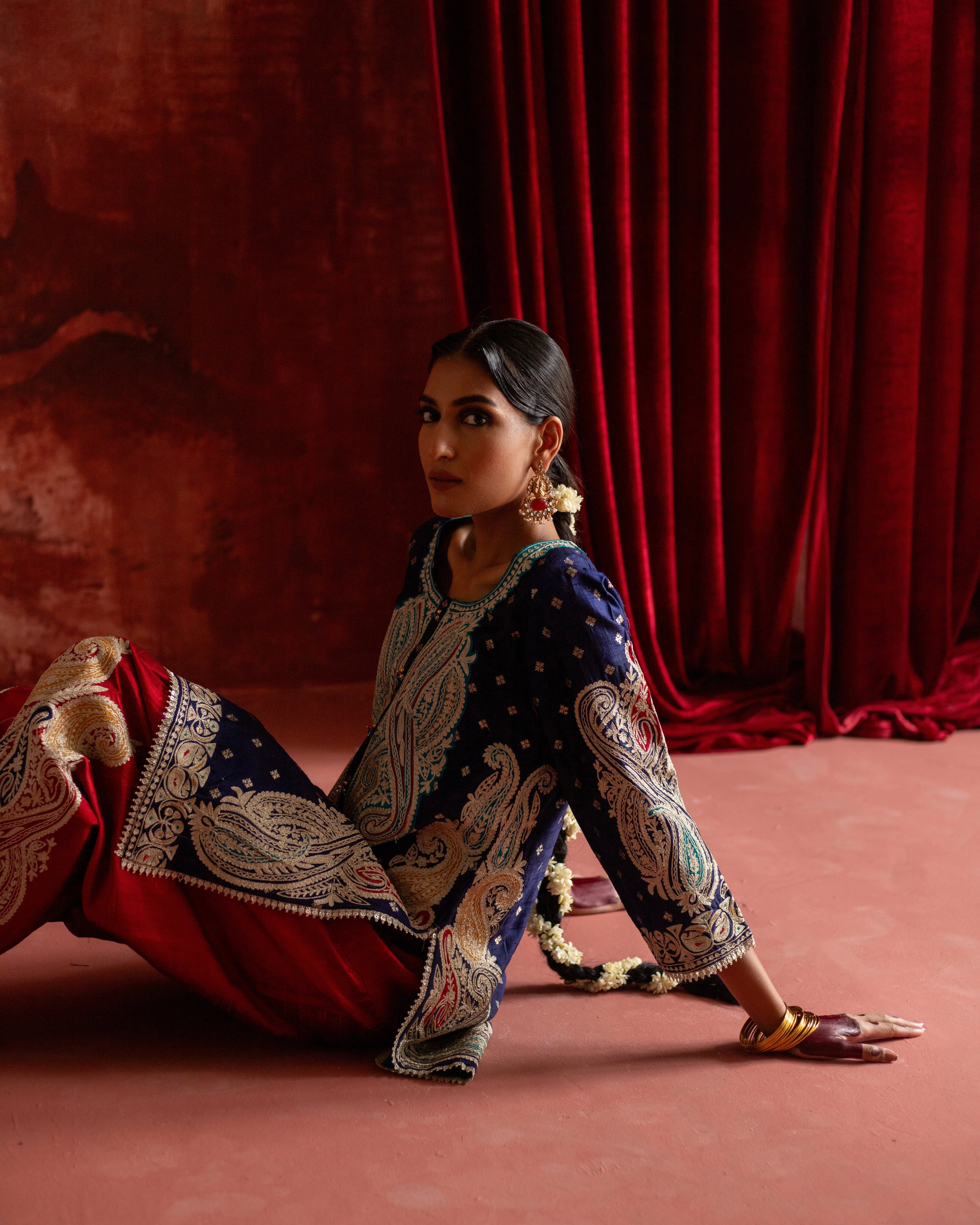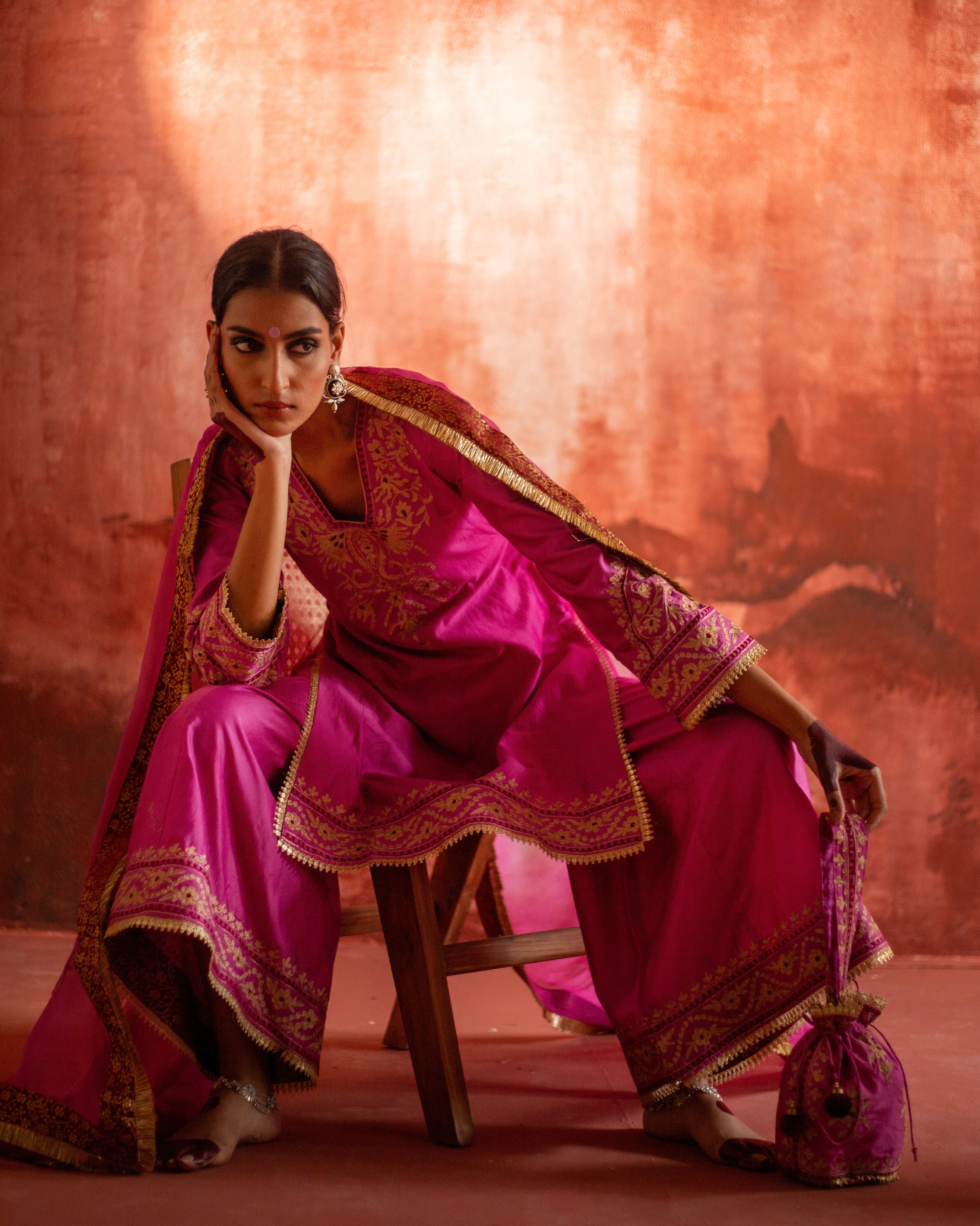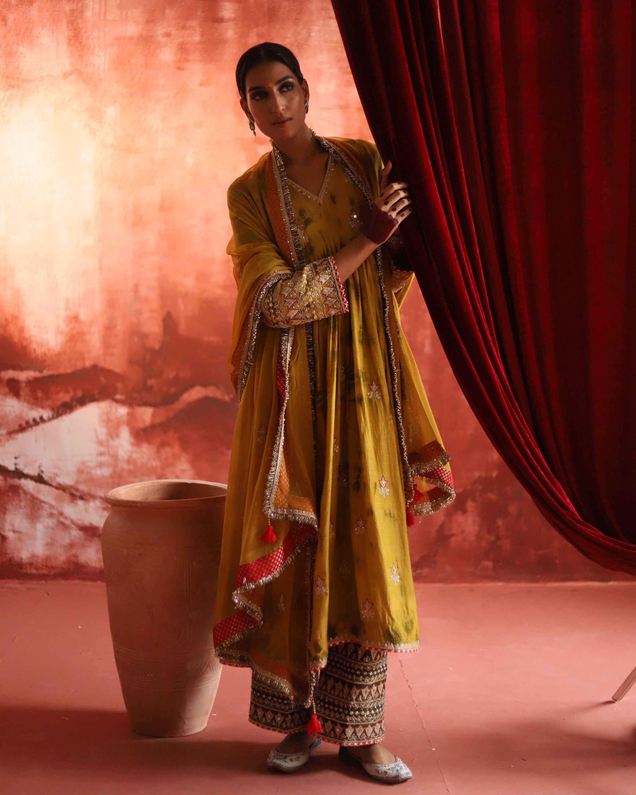 The tender morning light gently spilling through the open windows. The mingling aromas of mithai, haldi, chandan, fresh flowers along with the echoes of bhajan & sangeet. The lively chatter and preparations and as the curtain lifts Din Shagna Da reveals a collection showcasing timeless beauty, age old embroideries and heart of the bride's journey. The shaddi ka joda, a symbol of love and tradition, the sweet anticipation of a new beginning.